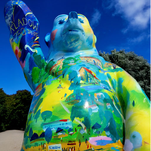 One of my favorite places in Berlin! At the ferry terminal in Kladow, visitors are welcomed by the River Havel and a cheerful, colorful Berlin bear. In the nearby beer gardens, people go about their day, creating a calm friendly yet rural atmosphere.